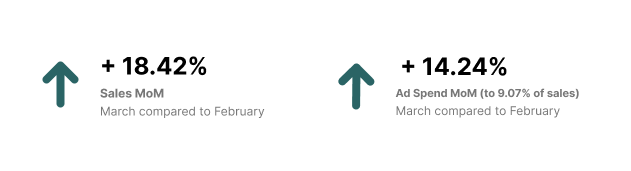 March saw an unusually large spike in sales this year, largely due to the success of the Big Spring Sale. We saw excellent results across the board that exceeded our expectations; while it didn't have eye-popping single day sales like Prime Day, we saw sustained 1.5-3x days for the full duration of the sale (which lasted over a week).
