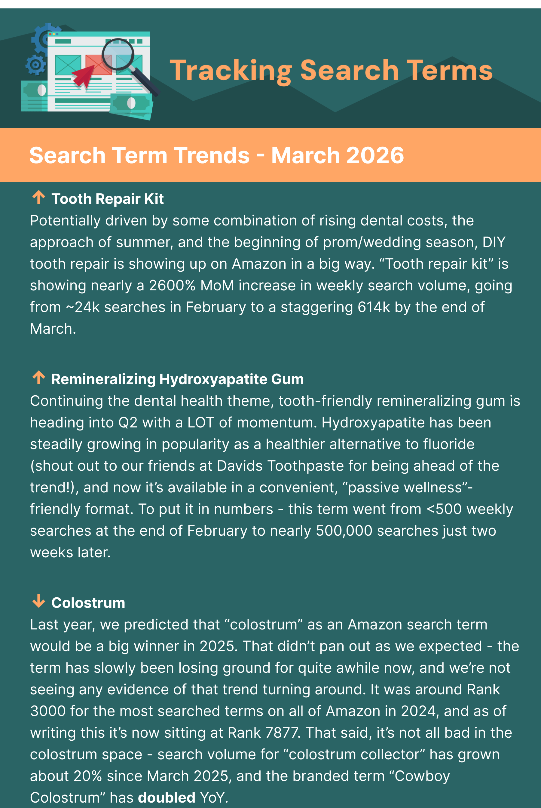 This option has quietly grown since last year. At the end of 2025, we reported on eggs and bananas growing 10x in search volume on Amazon. That spike is almost certainly because of this change, and we expect to see search volume on regular grocery items continue to climb as awareness and adoption grow.